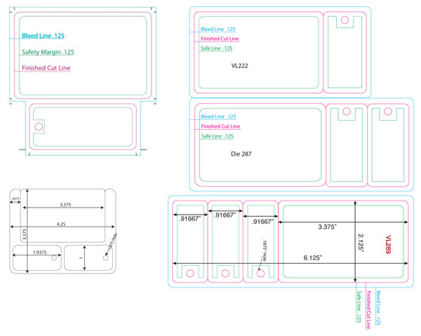 The 1/8″ space between the card and the key tag allows for bleeding, so you can print different colors on the card and the key tag, eliminating concern about the color bleeding over to the other item. This has proven a popular die for us, but it does not fit all applications. Some applications might require two or more key tags.