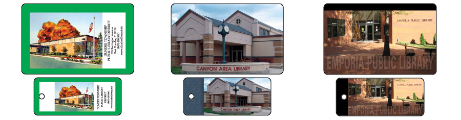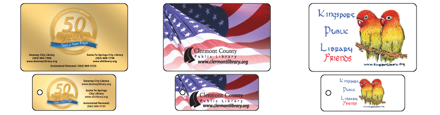 The standard construction of our library card, bar-coded card, and key tags all follow this construction.